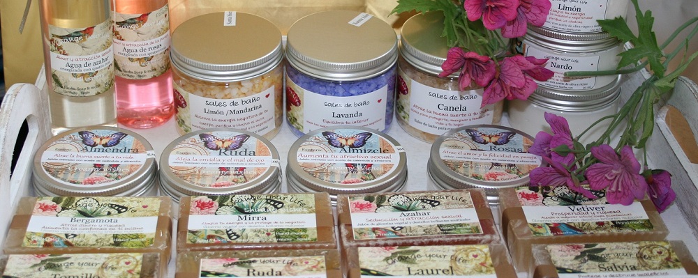 Productos hechos artesanalmente que utilizan la magia natural, la aromaterapia y la gemología.